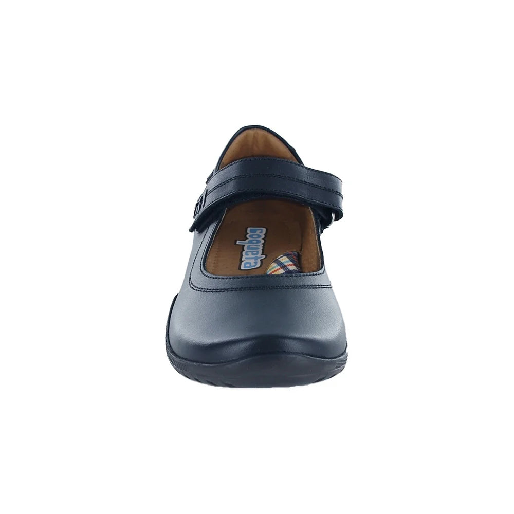 Coqueta y Audaz Zapatos Escolares para Niña de Piel Azul Marino con Velcro y Suela Antiderrapante