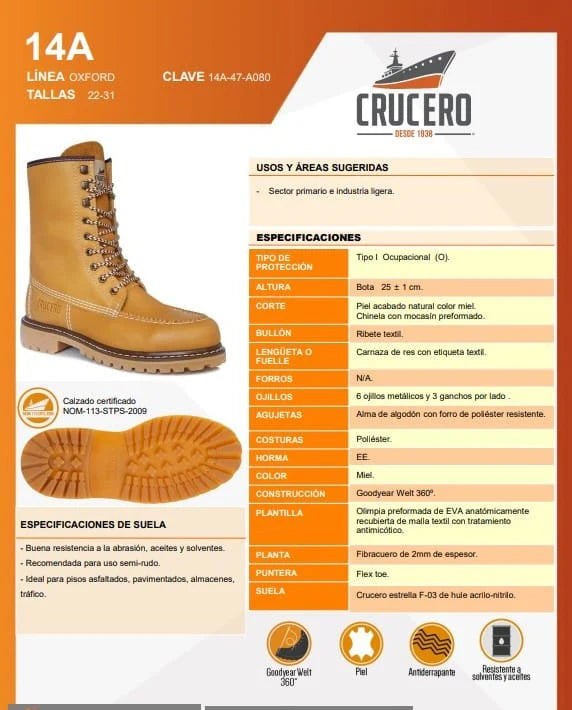 Si buscas un calzado que combine durabilidad, confort y un diseño moderno, las Botas de Trabajo Original Crucero Modelo 14A son la elección perfecta. Diseñadas para entornos industriales ligeros, ofrecen el soporte y la protección que necesitas durante largas jornadas laborales, sin comprometer el estilo.