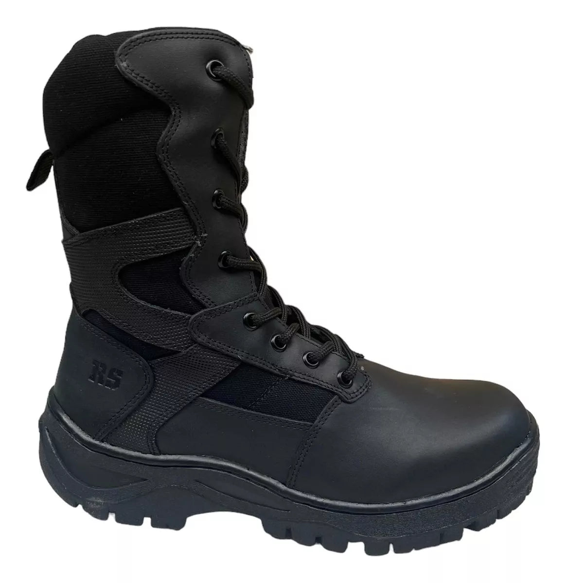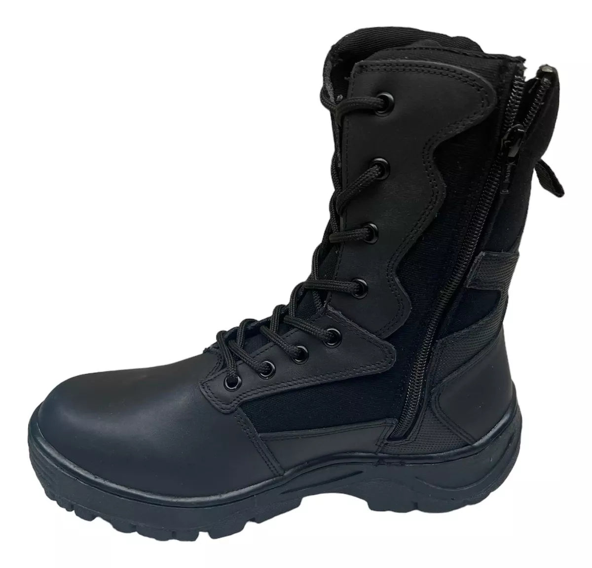 Botas Tácticas Negras 7523 – Piel y Gamuza, Cierre Lateral y Máxima Comodidad