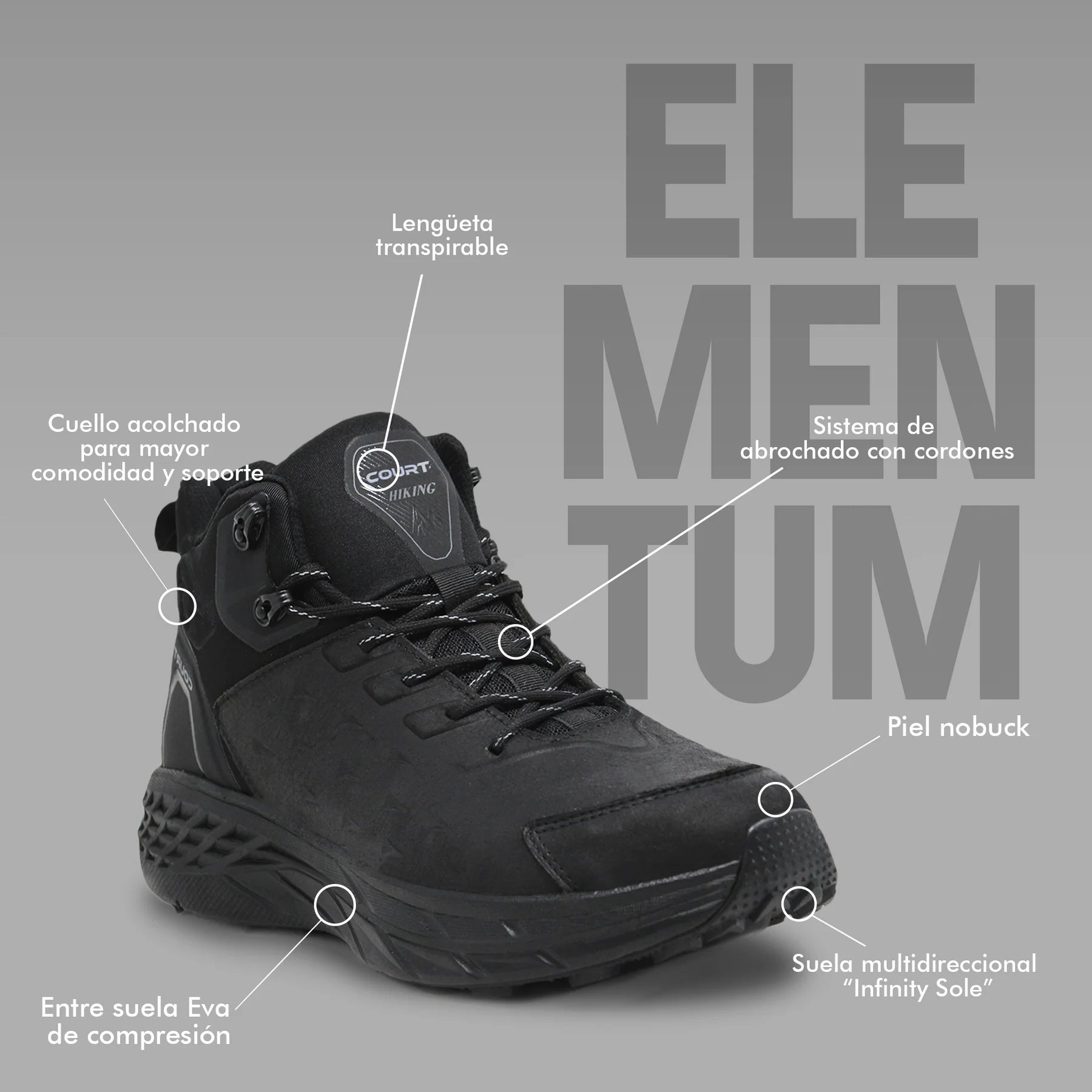 · 👟CALZADO ESPECIALIZADO: ¿Listo para la aventura? Vive la experiencia del Senderismo acompañado de Elementum, un calzado que te brinda la tecnología de una suela ranurada la cual te permite tener el mejor agarre al momento de recorrer los caminos más inestables. Cualidades que superan a los tenis convencionales.