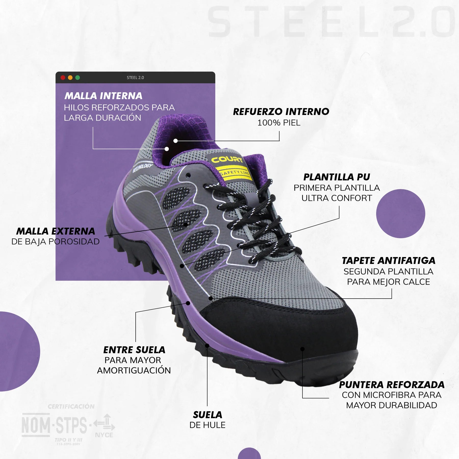 COURT STEEL Calzado de Seguridad Industrial con Casco de Poliamida, Dieléctricos, Certificados - Zapatos de seguridad