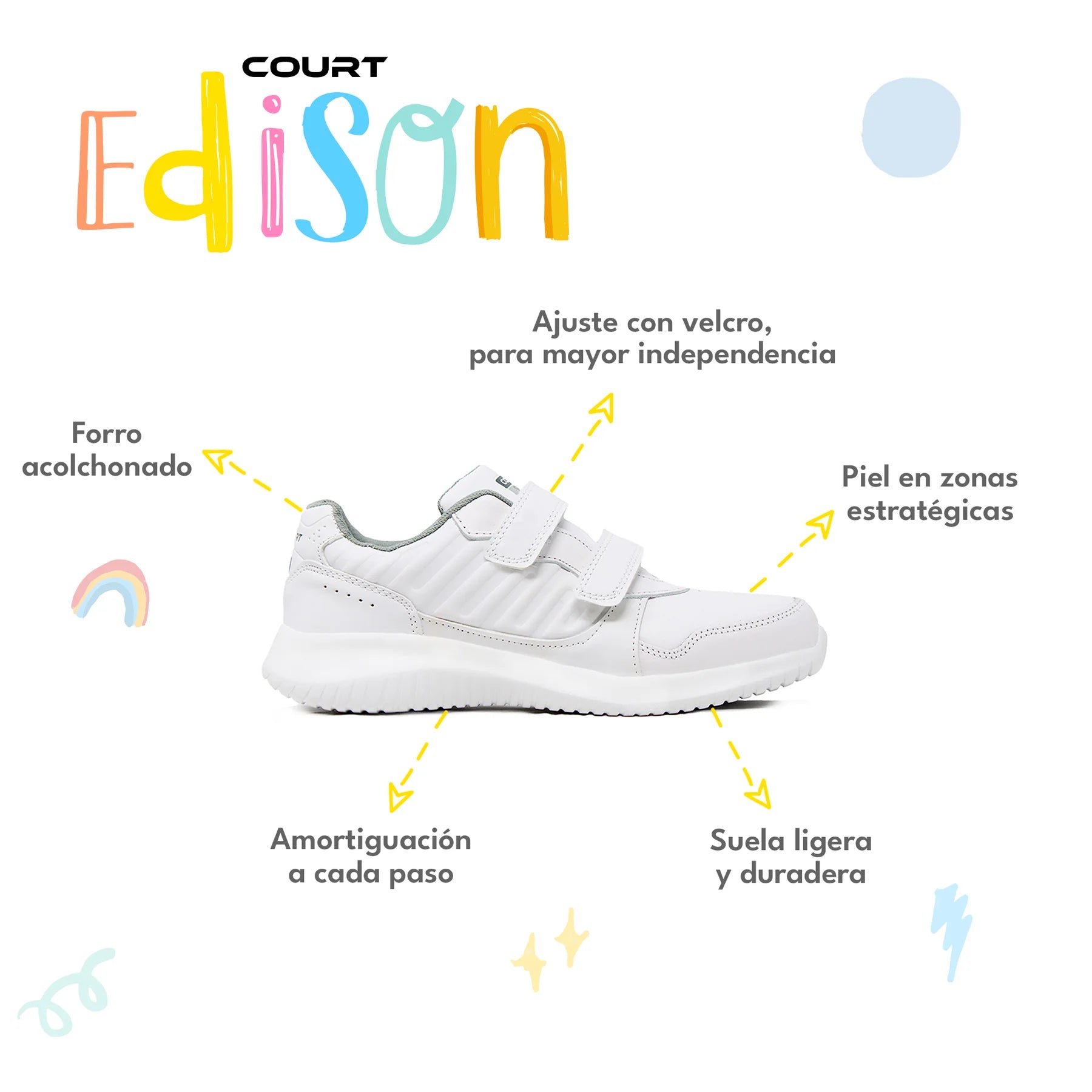 COURT Tenis Escolar para niños con Piel Durables, Cómodos, Ligeros con Velcro