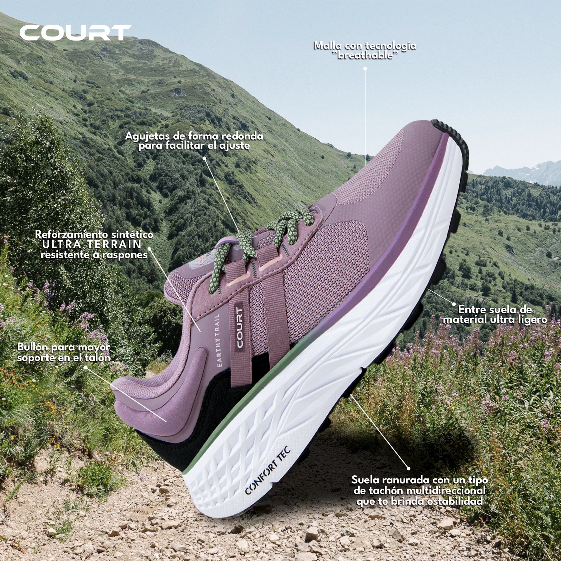 · 👌SELECCIONAMOS LOS MEJORES MATERIALES Y DISEÑO: -Suela ranurada con un tipo de tachón multidireccional con tracción que te brinda el agarre perfecto. -Reforzamiento sintético: "Ultra Terrain" que resiste los raspones y arañazos de cada aventura. -Material transpirable: tu pie se mantendrá fresco gracias a su tecnología "Breathe" que permite el flujo de aire y los malos olores. -Suela Eva: de compresión que brinda confort, ligereza y amortiguación ultra suave para llegar a la aventura.