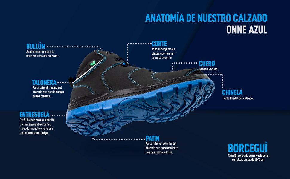 🥾 Tracción y estabilidad – Suela PU inyectada con patín de hule y fórmula de tetrapolímeros, proporcionando excelente agarre y resistencia en superficies complicadas.